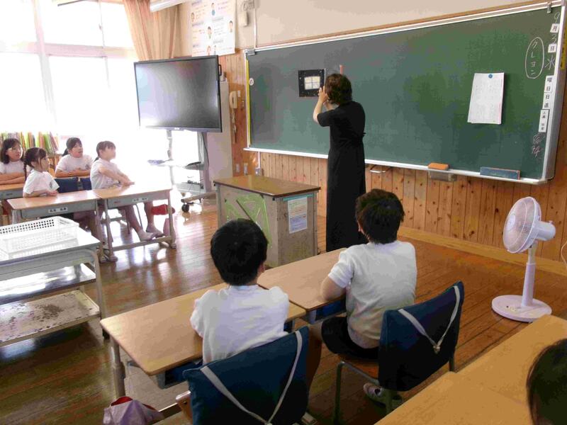 【今日から教育実習生のMさんが来ました。Mさんは御船小出身です。期間は9月12日(金)までです。5年1組を中心に様々な学級を参観していきます。あっという間の2週間だと思いますが、暑さに負けず頑張ってください。】