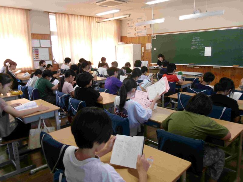 【2学期最初の読み聞かせです。低学年の児童も高学年の児童も、読み聞かせが大好きです。読み聞かせ「ばるーんの会」の皆様、2学期もよろしくお願いします。】