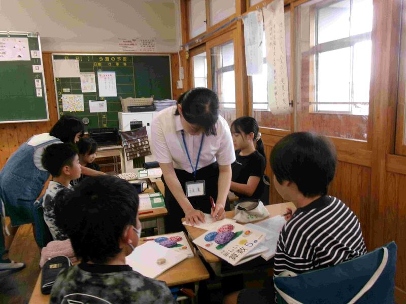 【今週月曜日から、明日金曜日まで1週間、教育実習生のAさんとTさんが、実習をがんばっています。現在御船小には先週から教育実習をおこなっているMさんを含め3人います。教材研究をしたり、子どもたちに寄り添ったりしています。頑張っている教育実習生です。授業に入り、子どもたちの手助けをしたり、研究授業をおこなったりもしています。】