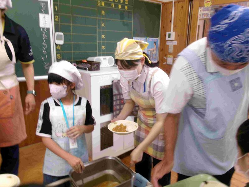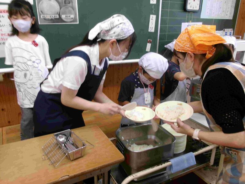 【給食の準備の様子です。】