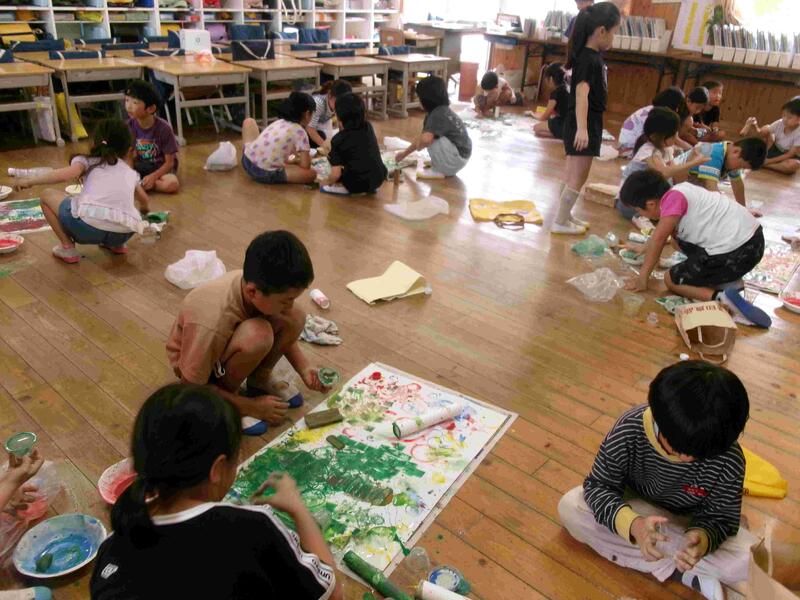 【1年生は図工で「あそぼうよパクパクさん」に取り組んでいました。とても楽しそうでした。】