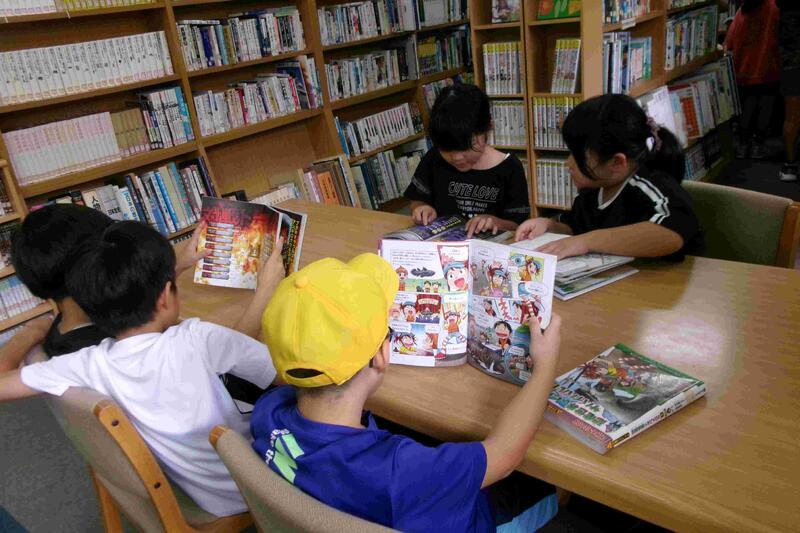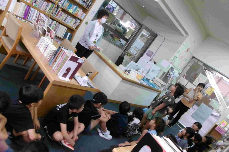【1年2組は図書室に行き本を借りていました。】