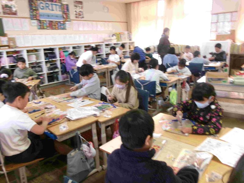 【3年1組は図工で、かなづちをつかって、楽しいものを作っていました。】