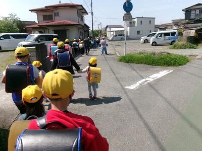3校時目、地区児童会が行われました。各登校班で集合場所や集合時刻を確認しました。給食終了後地区ごとに一斉下校をしました。