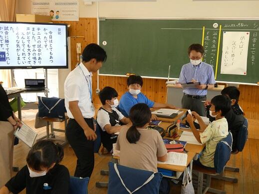 今日は、教育実習生のNさんとTさんの研究授業が、2年1組と5年1組でおこなわれました。事前の準備もがんばっていました。子ども達はとても楽しんでいました。教育実習は明日までです。頑張っている、NさんとTさんです。