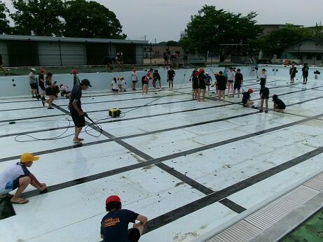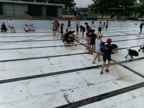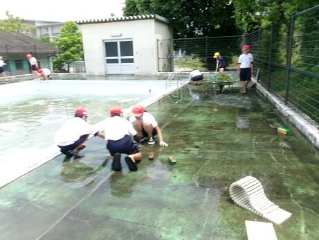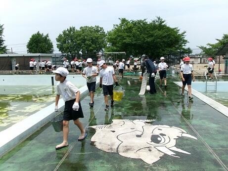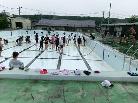 今日はプールそうじがおこなわれました。3・4校時目に、5年生がプールサイドをそうじをしてくれました。5・6校時目に、6年生がプールの中をそうじしてくれました。とてもきれいになりました。来週17日(月)からプール開き週間になります。5年生・6年生のみなさんありがとう!