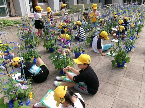 1年生のあさがおの様子です。日に日に大きくなっています。
