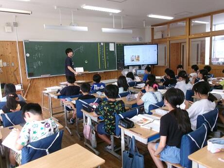 【5年3組は算数で、小数をかける計算を学習していました。静かにじっくり考えていました。】
