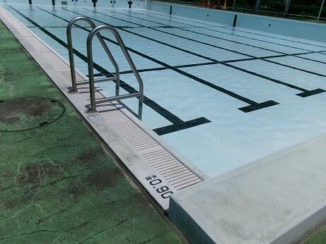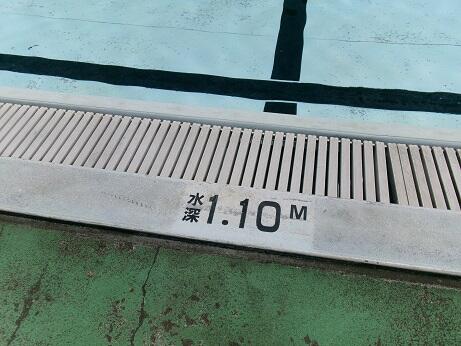 大きいプールは、縦25m、横13.7mです。水深は一番端が0.9m、中央の一番深い所は1.1mです。