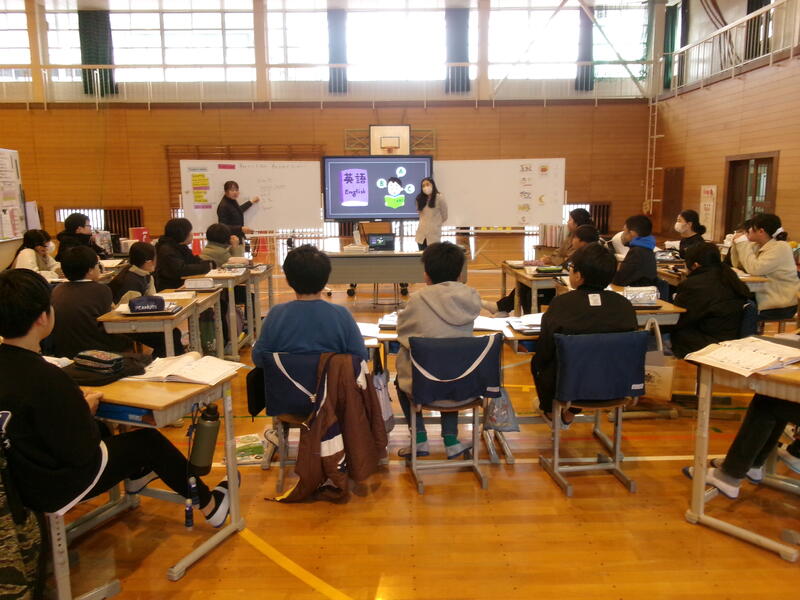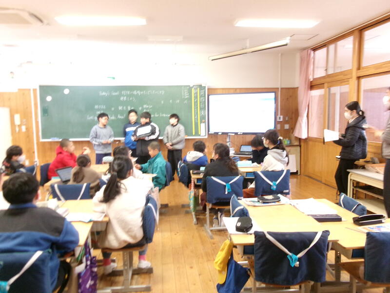 【5年3組は英語で、行きたい場所の発表をしていました。】