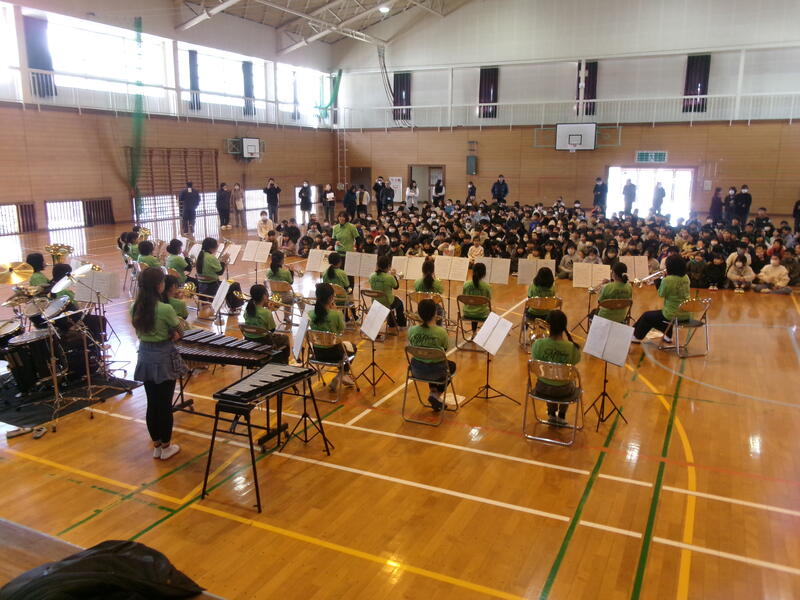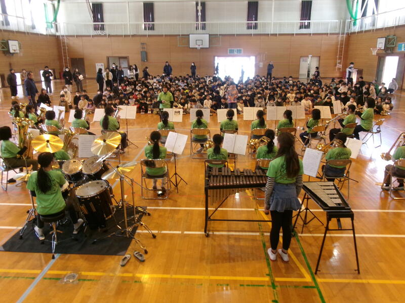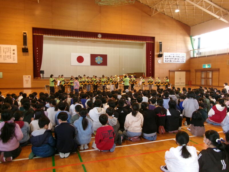 【昼休みを利用し、体育館でMJKの演奏会がおこなわれました。多くの子どもたちが鑑賞しました。MJKのみなさん、素晴らしい演奏をありがとう。】