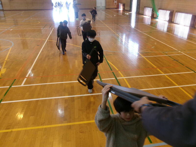 【2月13日(木)は本校の研究発表会です。今日はスポーツセンターからパイプいすをお借りしました。6年生、5年生の児童が運んでくれました。ありがとう。】