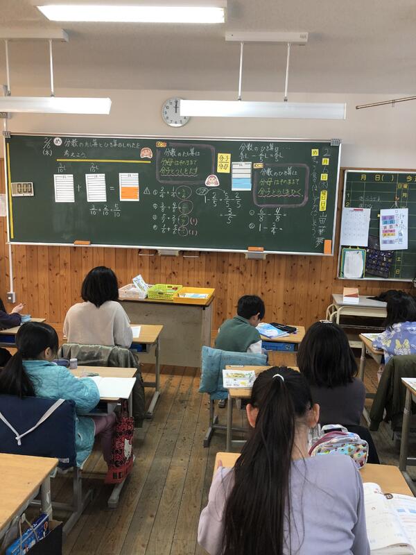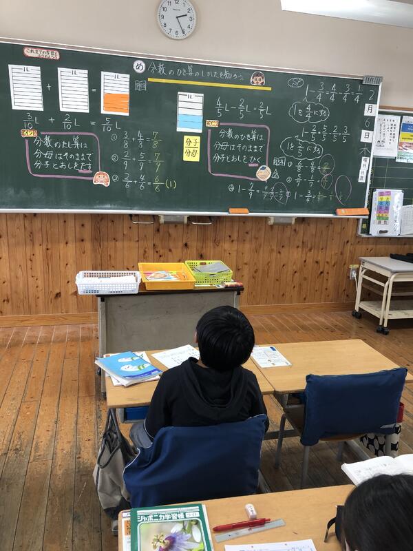 【3年生算数の学習です。分数のたし算、ひき算をしています。】