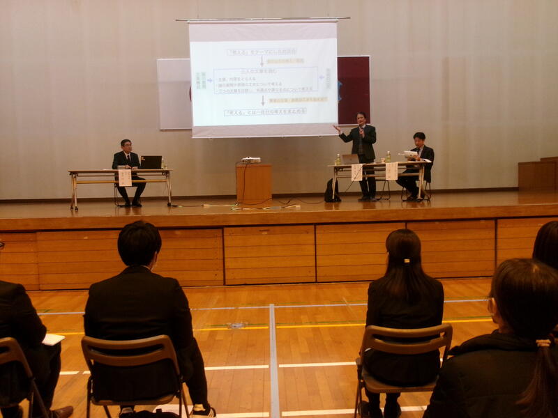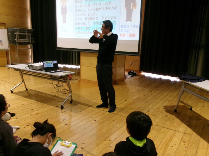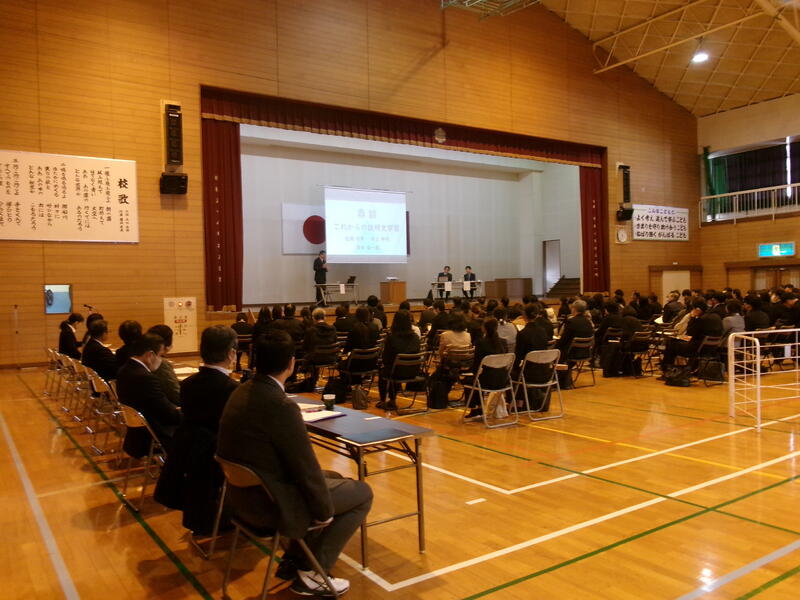 【13:15~13:35オリエンテーション研究主任佐々木雄亮教諭「研究理論と授業の見どころ」】