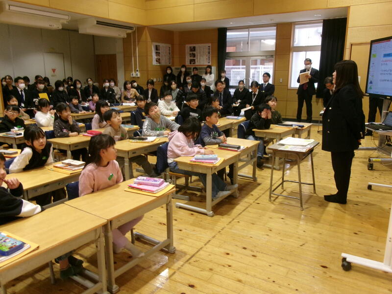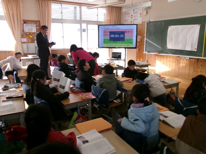 【13:45~14:30公開授業(1)2年1組:指導者酒井優子教諭~だいじなことばに気をつけて読み、分かったことを知らせよう「ロボット」~】