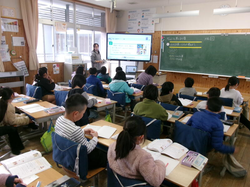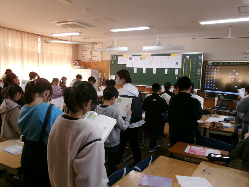 【4年2組:国語で「風船でうちゅうへ」を学習していました。音読が上手でした。】
