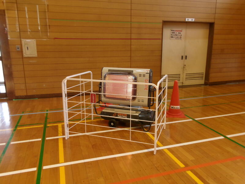 【6年1組:体育館 寒さ対策として大型ストーブが設置されています。】