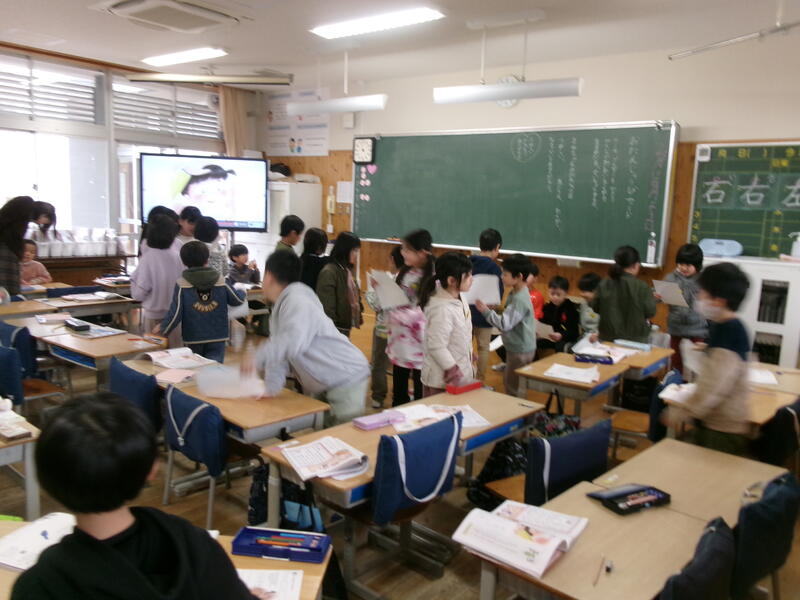 2年1組・6年1組以外の児童は、3時間授業で給食があります。下校予定時刻は12時45分頃です。よろしくお願いします。
