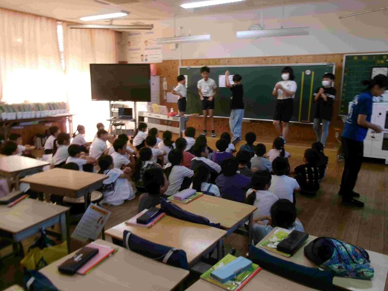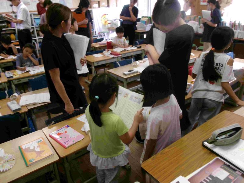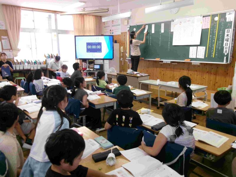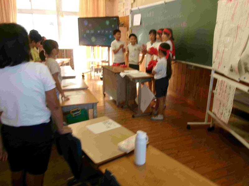 【本日5校時目、2年1組の研究授業がおこなわれました。国語です。紙コップ花火の作り方 おもちゃのつくりかたをせつめいしよう というところです。要約するために必要な語や文を見つける学習がおこなわれました。「問い」を生む工夫・「わかった、できた」を実感させる工夫等がなされていました。2年1組の保護者の皆様は、今日の授業でどういうことを学習したか、子どもさんに聞いていただくと幸いです。児童下校の後、授業研究会が交流ホールでおこなわれました。講師には先日(9月17日)にも来校して頂いた、熊本県立教育センター指導主事増田直樹先生です。明日からの国語の授業で、すぐに役立つ助言等をしていただきました。ありがとうございました。】