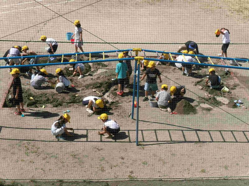 【1年1組は生活科で、「みんなですなあそびをたのしもう」をやっていました。】