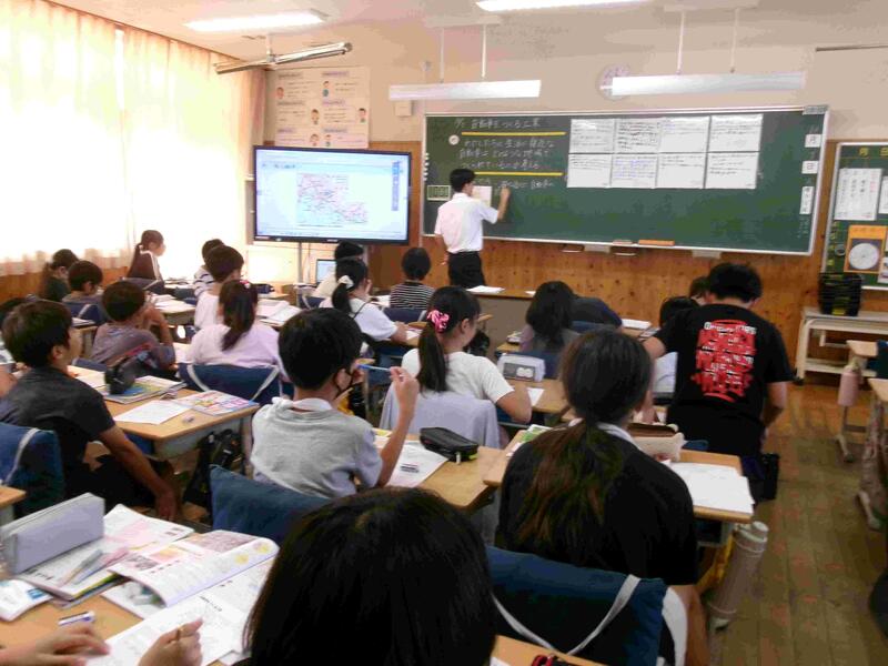 【5年2組は社会で「自動車をつくる工業」を学習していました。】