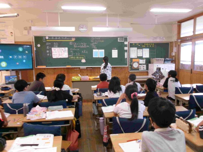 【4年1組は、4年1組教室と算数少人数教室に分かれて、「がい数」の学習をしていました。】