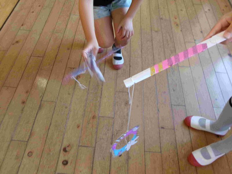 【2年生は両クラスとも図工で、けんだま作りをしていました。できあがった人は、けんだまあそびをしていました。楽しそうでした。】
