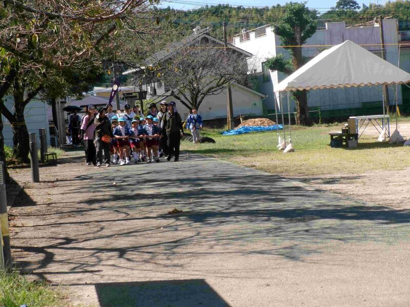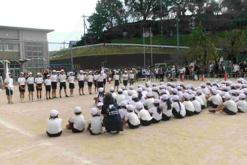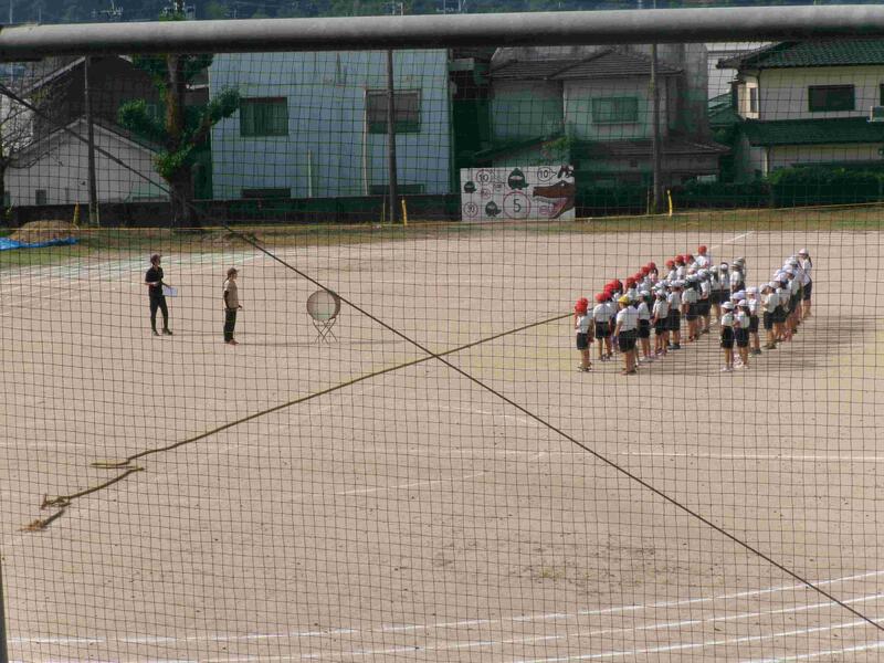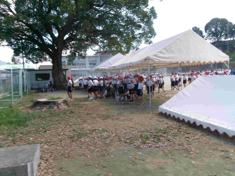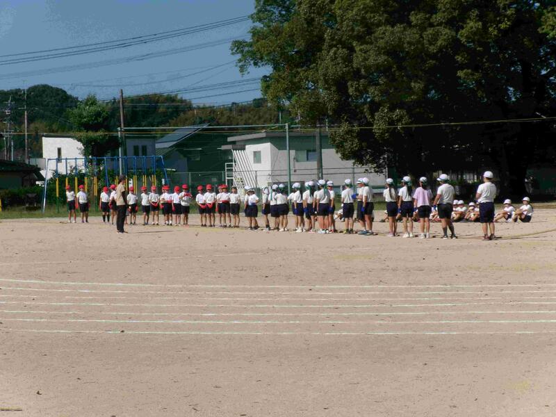【3年生は運動場で、運動会の練習をしていました。きびきびした行動でした。】