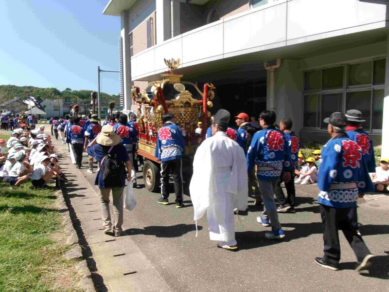 【本日3校時目と4校時目の休み時間等をつかい、若宮神社秋の例大祭の見学をしました。】