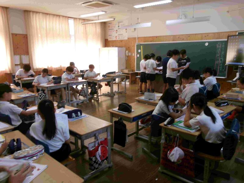 【6年1組は国語で、宿題の丸付けをおこなっていました。】
