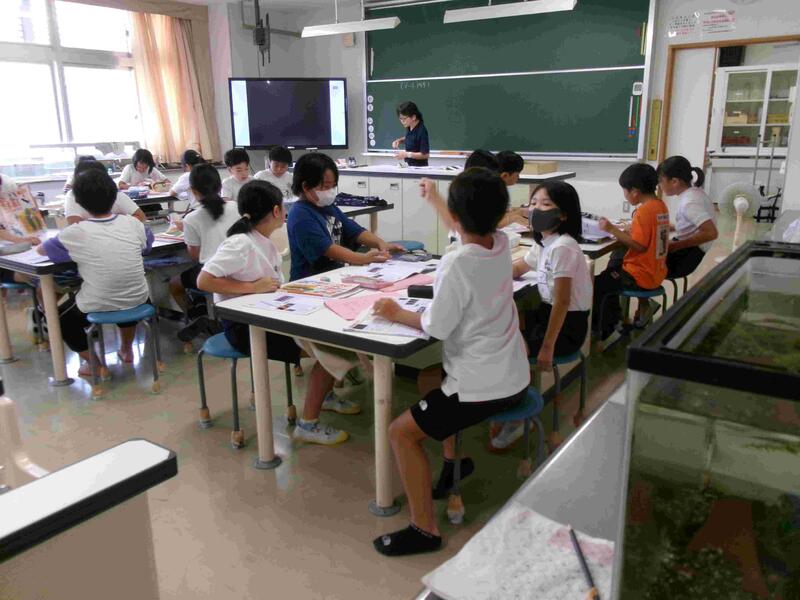 【4年2組は理科室で「月の位置の変化」を学習していました。】