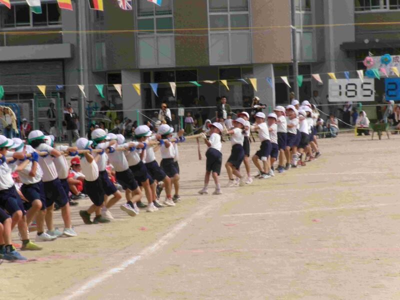 【3年生は運動場で、運動会の練習「つなひき」などに取り組んでいました。】