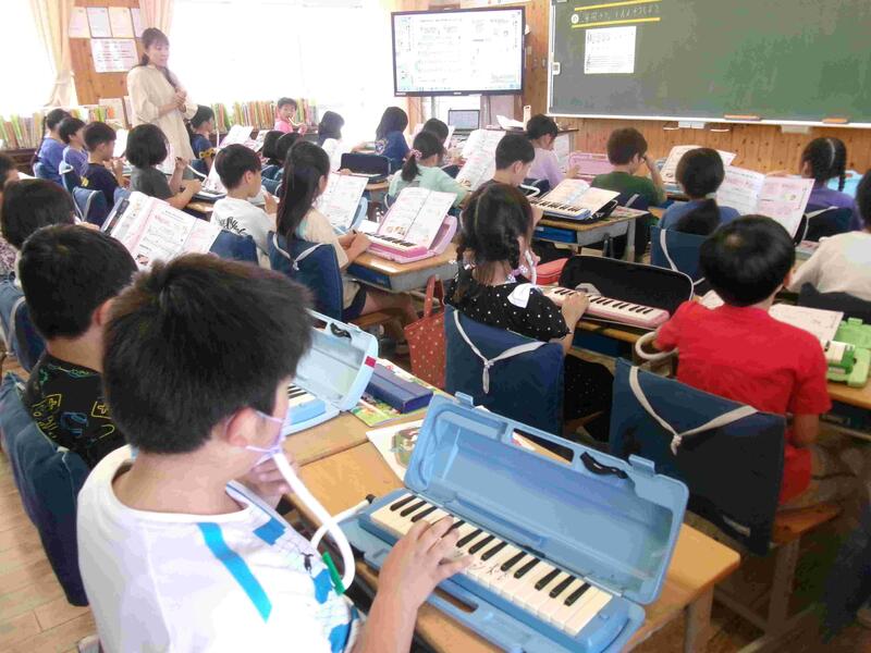 【3年1組:音楽 鍵盤ハーモニカの練習をしていました。】
