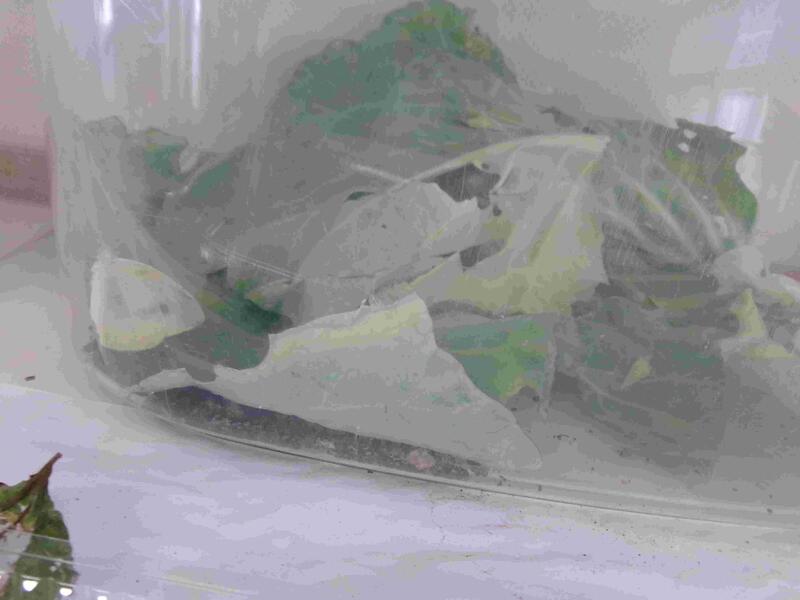 【3年生の教室後ろには、モンシロチョウなどがいます。今日さなぎから羽化したそうです。】