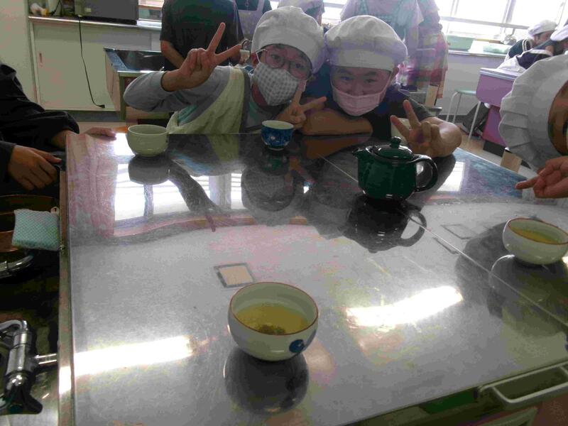【今日、6校時目5年2組は、家庭科で「お茶を入れてみよう」をおこないました。】