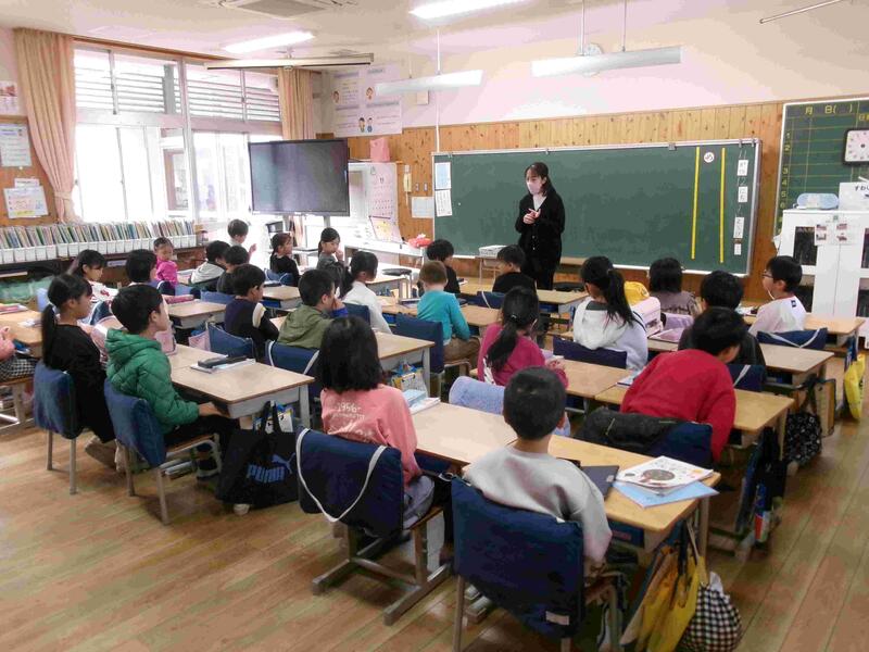 朝の健康観察の様子です。担任が一人一人の児童の名前を呼び、顔の表情や声の大きさ等で体調を確認しています。