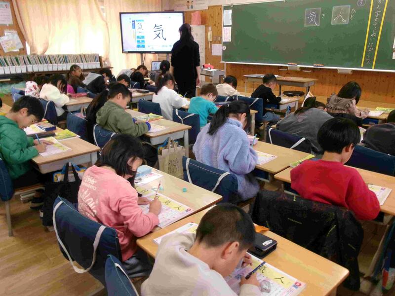 【1年2組:漢字をていねいに書いていました。物音ひとつ聞こえませんでした。素晴らしい集中力です。】