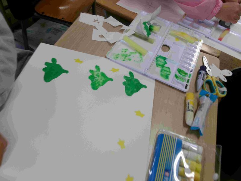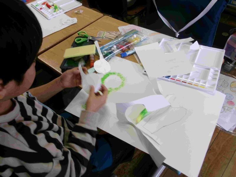 【2年1組:図工で「ステンシルはんが」に取り組んでいました。】