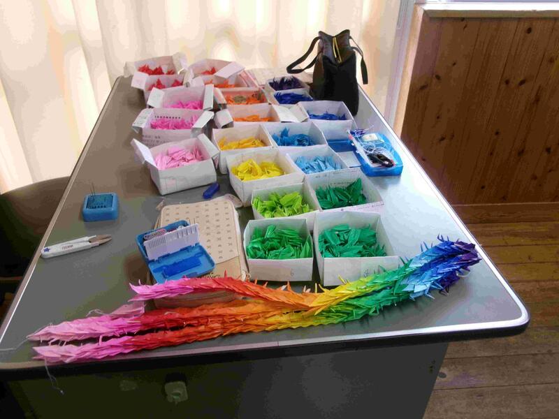 【6年3組:総合の時間をつかい平和について調べていました。来週11月18日~19日修学旅行です。千羽鶴が作成中でした。】