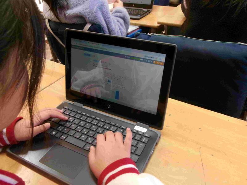 【今週はタイピングトライ週間です。朝自習の時間等を使って、タイピングの練習をしています。タブレットにタイピング用ソフトが入っています。家庭でもたくさん活用されてください。とても早く正確に打てる児童もたくさんいますよ。】
