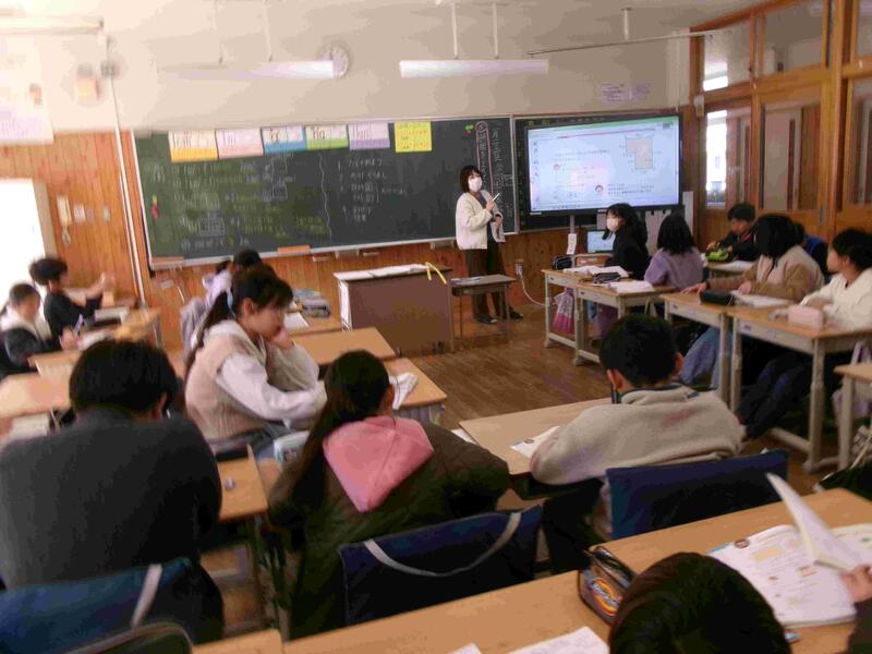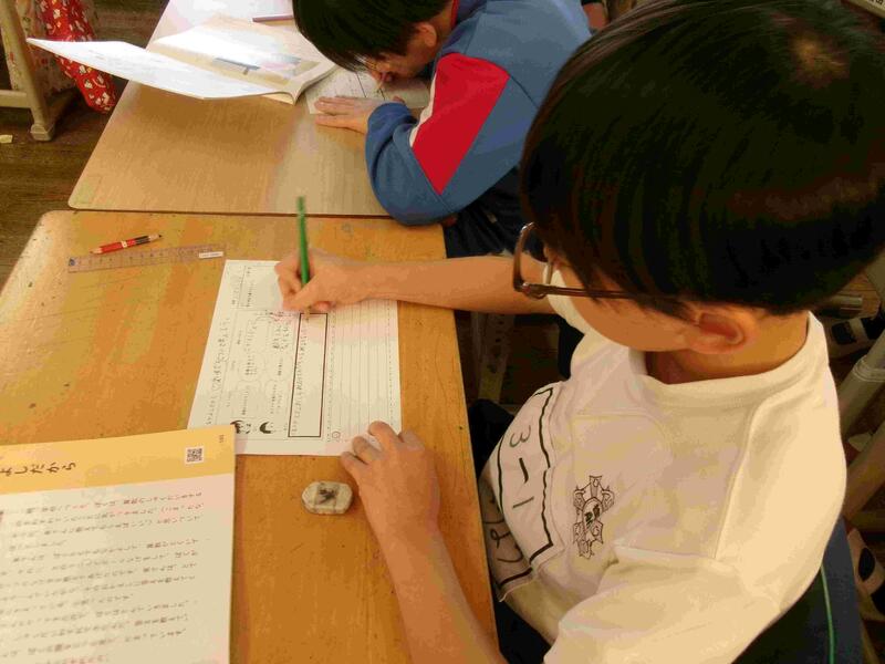 【4年1組は算数で、面積のまとめをしていました。日ごろあまり使わない、a(アール)やha(ヘクタール)などの学習も振り返っていました。】