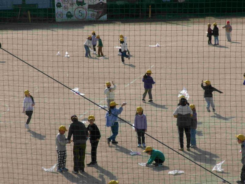 【本日、1年生はたこ作りをしました。作ったたこを、5時間目運動場であげました。子どもたちの歓声が響いていました。】