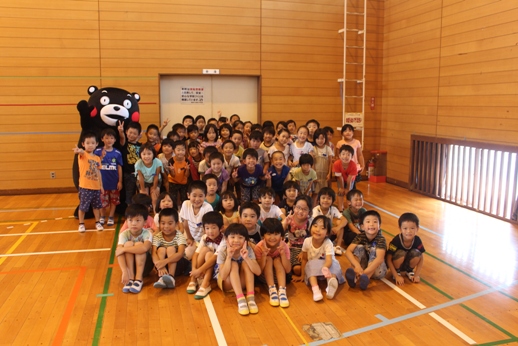 贈呈式の後はくまもんと、楽しくくまもん体操を踊りました。子供たちは目をきらきら輝かせながら、元気いっぱいに楽しく踊っていました。