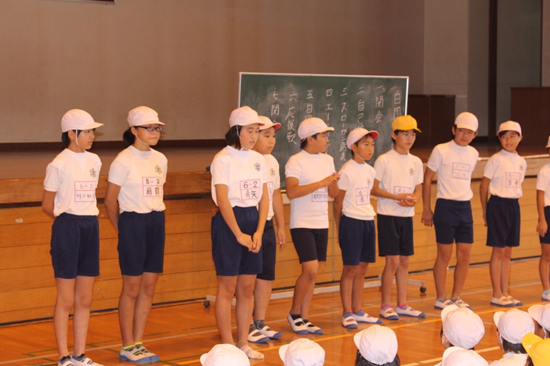 そのことを踏まえた上で、全校集会では、運動会に向けたお話がありました。「かけっこで、体操で、服装で、開会式で、御船小学校の『すごい力』を見せつけ、お家の人や地域の皆さんの心をジーンとさせましょう!」主となって運動会を担当する吉村先生の、勢いのある熱い言葉は、きっと子どもたちの胸に響いたことだと思います。