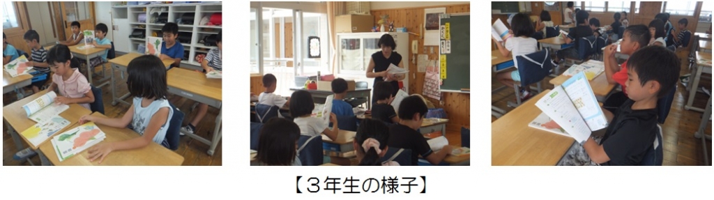 新しい教科書に胸を膨らませるのは3年生です。はじめに担任から「教科書はたくさんの人たちの『子どもたちに勉強をがんばってもらいたい』という気持ちが込められた大切なものです。」という話がありました。すると、子どもたちは、1ページずつ慎重にめくったり、机の上に教科書を並べて眺めてみたりする様子がありました。