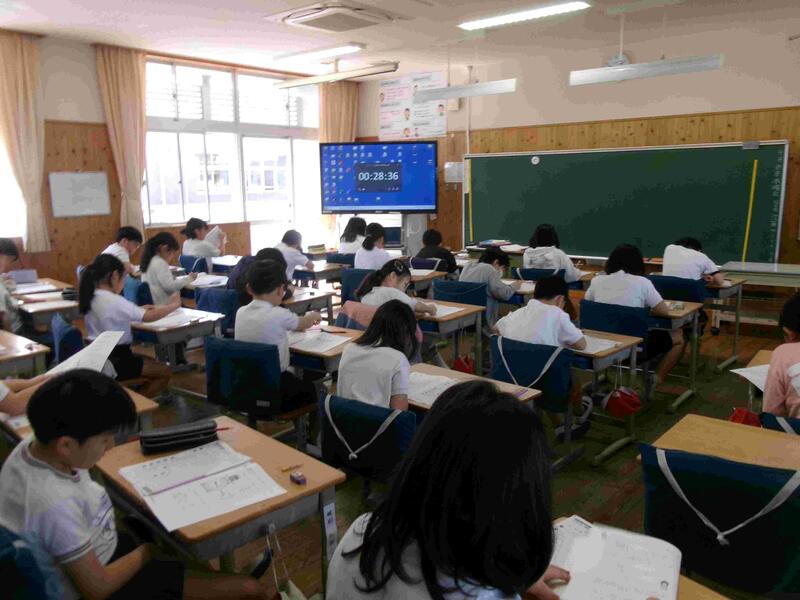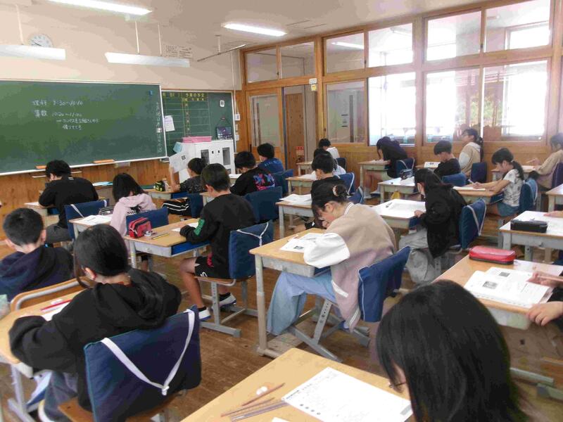 【御船町学力調査二日目です。2校時目算数(2年生~6年生)、3校時目理科(4年生~6年生)、4校時目英語(6年生)でした。近日中には解答をしていく予定です。頑張っている御船っ子たちです。】