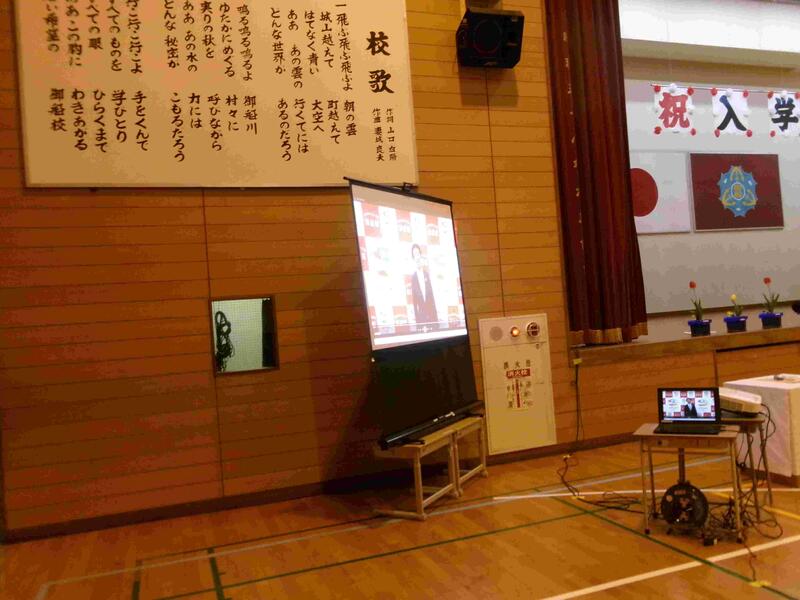 【入学式が始まる前、「令和7年度御船小学校主な行事」のプレゼンを6分間視聴していただきました。】