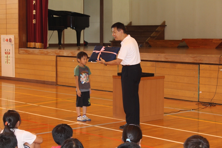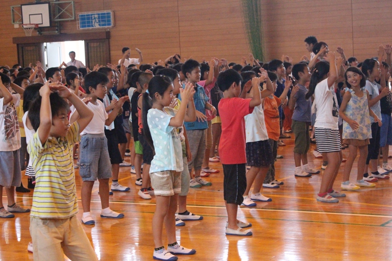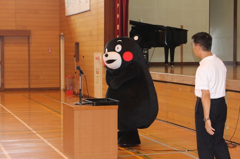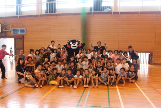 贈呈式の後はくまもんと、楽しくくまもん体操を踊りました。子供たちは目をきらきら輝かせながら、元気いっぱいに楽しく踊っていました。