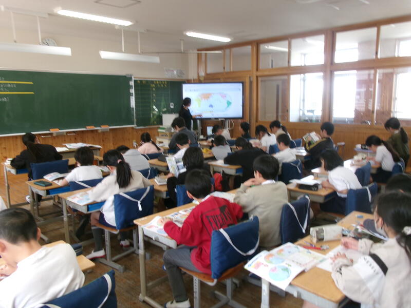 【5年1組:社会「世界の中の国土」緯度や経度を学習していました。】