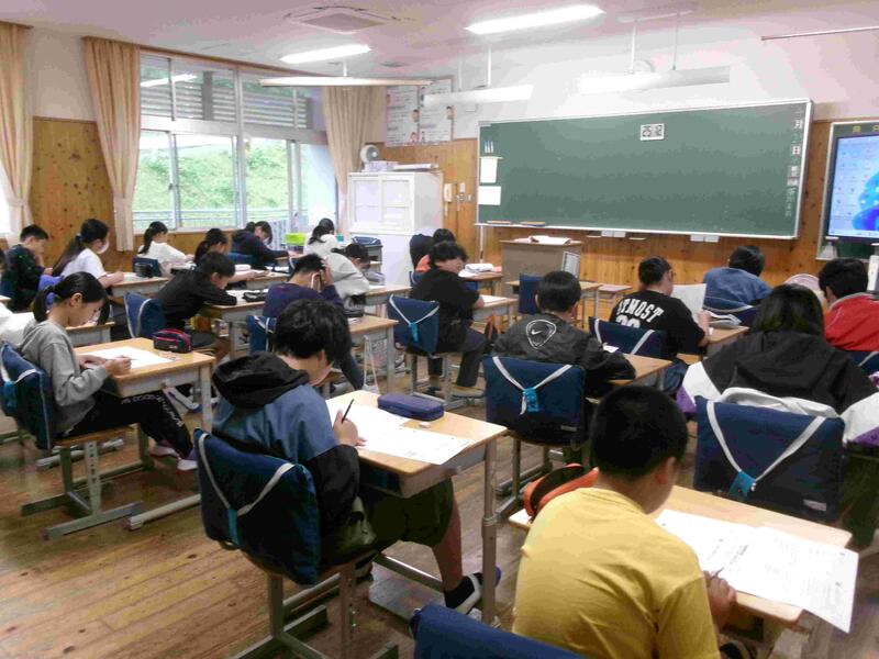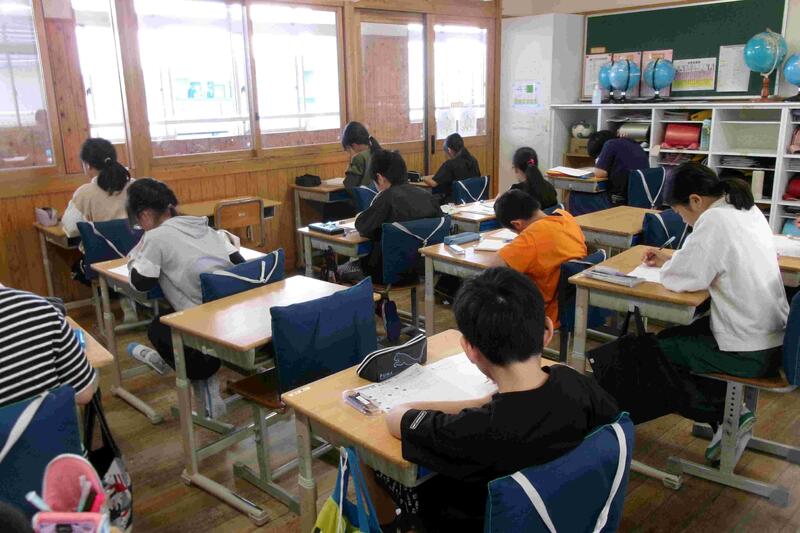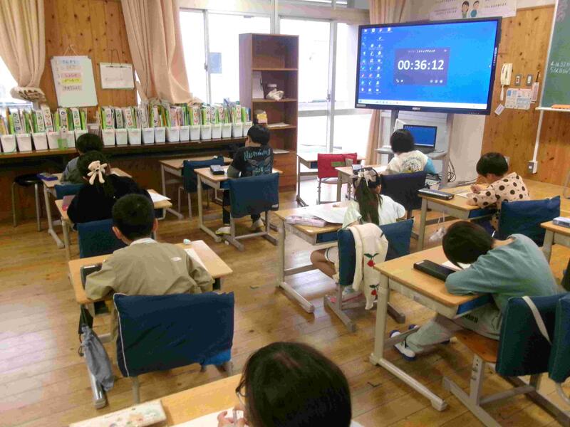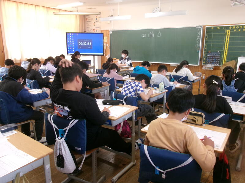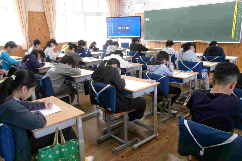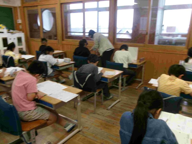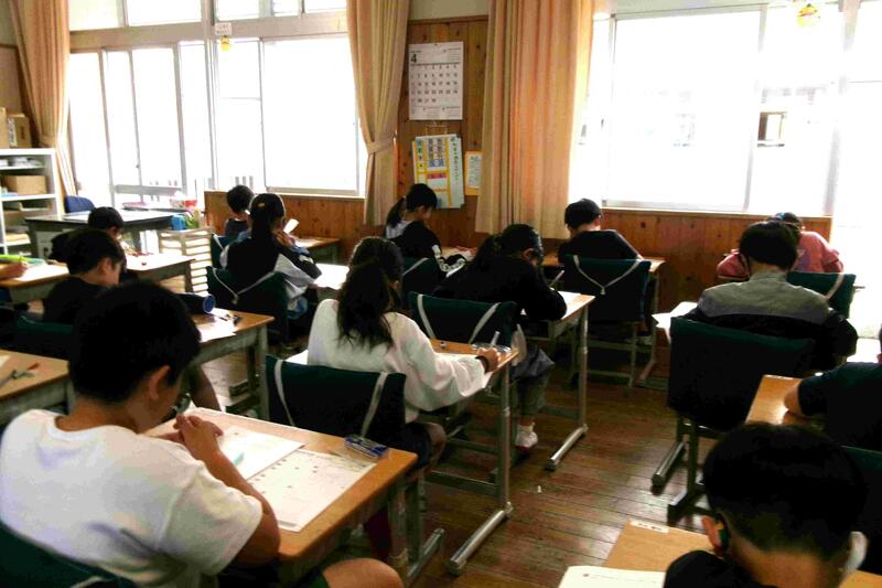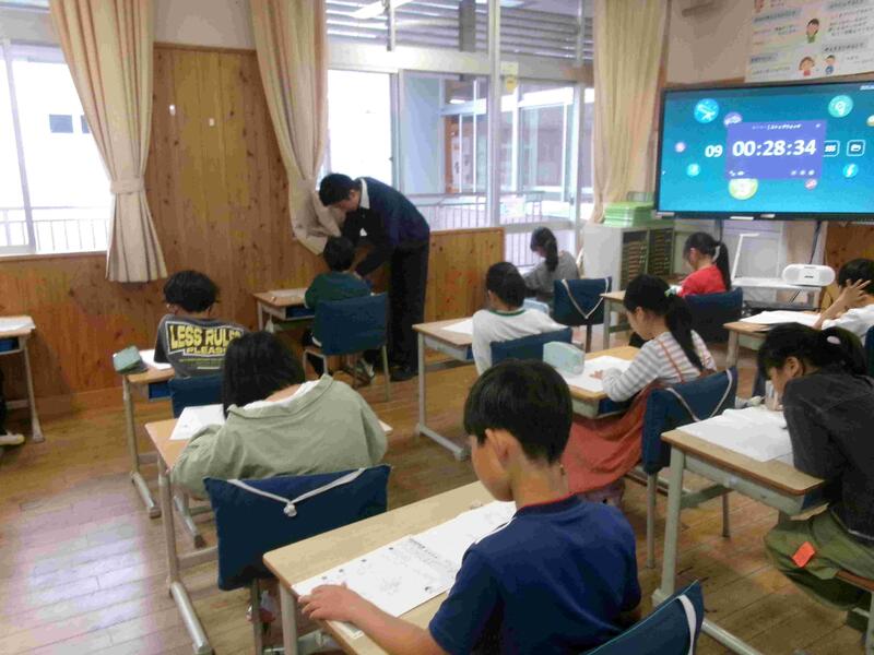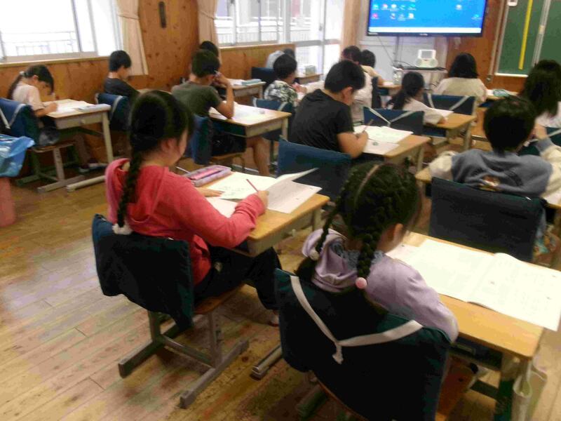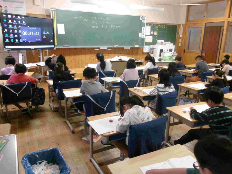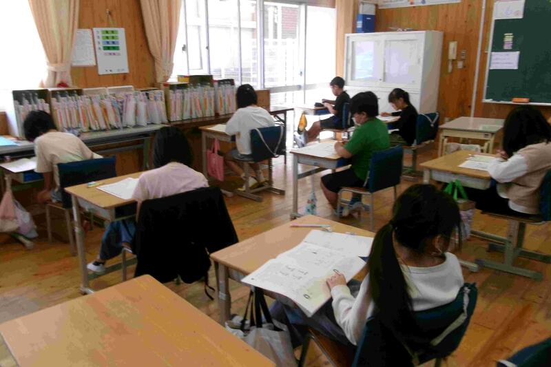 【今日から明日にかけ、御船町学力調査が実施されます。対象は2年生以上の児童です。2年生、3年生は国語と算数、4年生、5年生は国語、算数、理科、社会、6年生は国語、算数、理科、社会、英語です。また、i-check(質問紙)もおこなわれます。がんばっている御船の子どもたちです。】